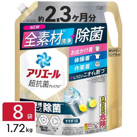 P&G アリエール ジェル 除菌プラス 洗濯洗剤 詰め替え 超ウルトラジャンボサイズ (1.72kg×4袋×2箱) 4987176309037