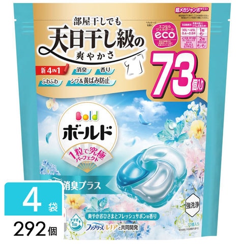 P&G ボールド 洗濯洗剤 ジェルボール 4in1 爽やかおひさまとフレッシュサボンの香り 詰め替え 超メガジャンボ292個(73個×4袋) 4987176292797