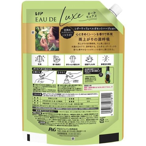 P&G レノア オードリュクス 柔軟剤 シダーウッド&ベルガモットハーブの香り 詰め替え 特大 680mL×8袋 4987176278111