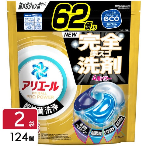 P&G アリエール ジェルボールプロ パワー 洗濯洗剤 詰め替え メガジャンボ 124個(62個×2袋) 4987176284587