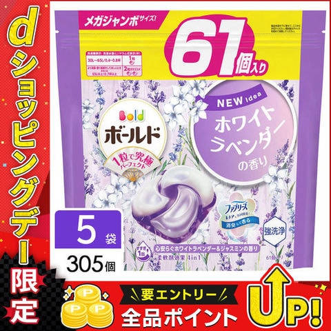 P&G ボールド 洗濯洗剤 ジェルボール 4in1 ホワイトラベンダー&ジャスミン 詰め替え メガジャンボ 305個(61個×5袋) 4987176264619