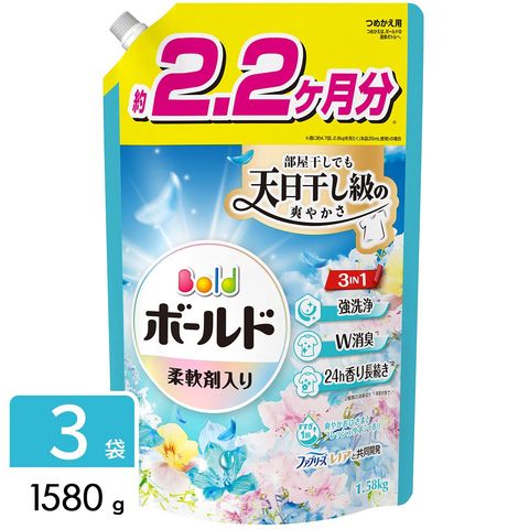 P&G ボールド 柔軟剤入り 洗濯洗剤 液体 爽やかおひさまとフレッシュサボンの香り 詰め替え ウルトラジャンボ 1580g×3袋