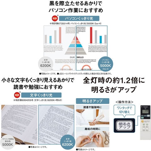 パソコンくっきり光と全灯(文字くっきり光)の二つのあかりにリモコンで切り替えができます。