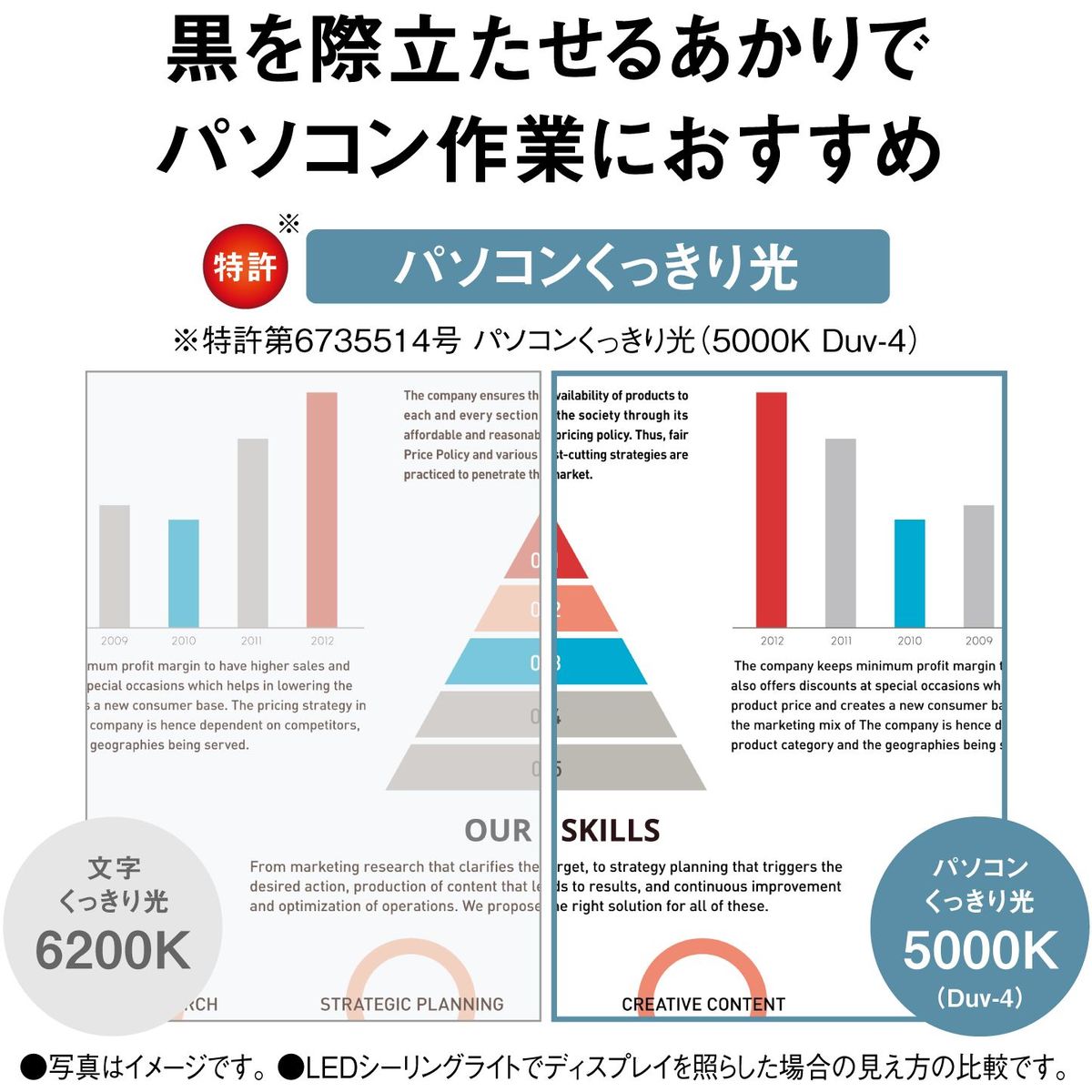 パソコンやタブレットの画面も本の文字も見やすいあかり