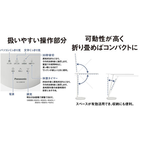Panasonic パナソニック パルック LEDデスクスタンドライト 自立式 ホワイト SQ-LD440-W