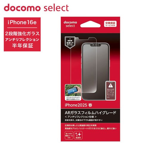ドコモ純正 iPhone 16e ARガラスフィルムハイグレード 液晶保護フィルム 半年保証 2段階強化ガラス 反射光低減