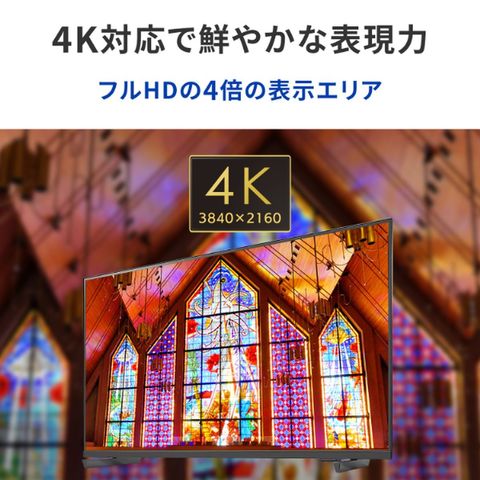 本商品は、4KUHD(3840×2160ピクセル)解像度に対応した、大画面43型(可視領域42.5型)のワイド液晶ディスプレイです。