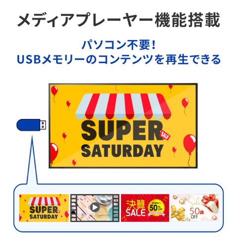 さらに、メディアプレイヤー機能を搭載しており、本商品に接続したUSBメモリー内のコンテンツを再生することができます。