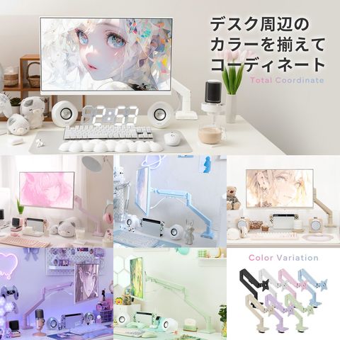 3関節のガススプリング式アームにより、動画鑑賞や事務作業、ゲームなど様々な用途に合わせながら、自由自在にモニターの角度や高さを調整できます