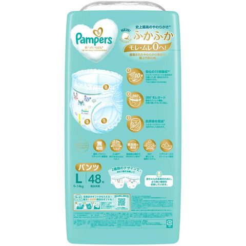パンパース オムツ 肌へのいちばん* NEW!コットンのようにふかふか モレ・ムレ0へ!97%# のママがまた使いたいと答えましたNEW! パンパース 史上最高のやわらかさ^ 厳選されたやわらかな素材で、極上の肌心地。 安心の10倍吸収**シルキーソフトシートと吸収体が 分散して、即・吸収するから、お肌さらさら。360°モレガード独自のフィット機能。元気に動いても、モレ防止。肌摩擦を軽減*シルキーソフトシートが 肌をやさしく包みます。香料 パラベン ラテックス 無配合2.5倍*** 伸びるふわふわベルト最高級の素材で作られています*