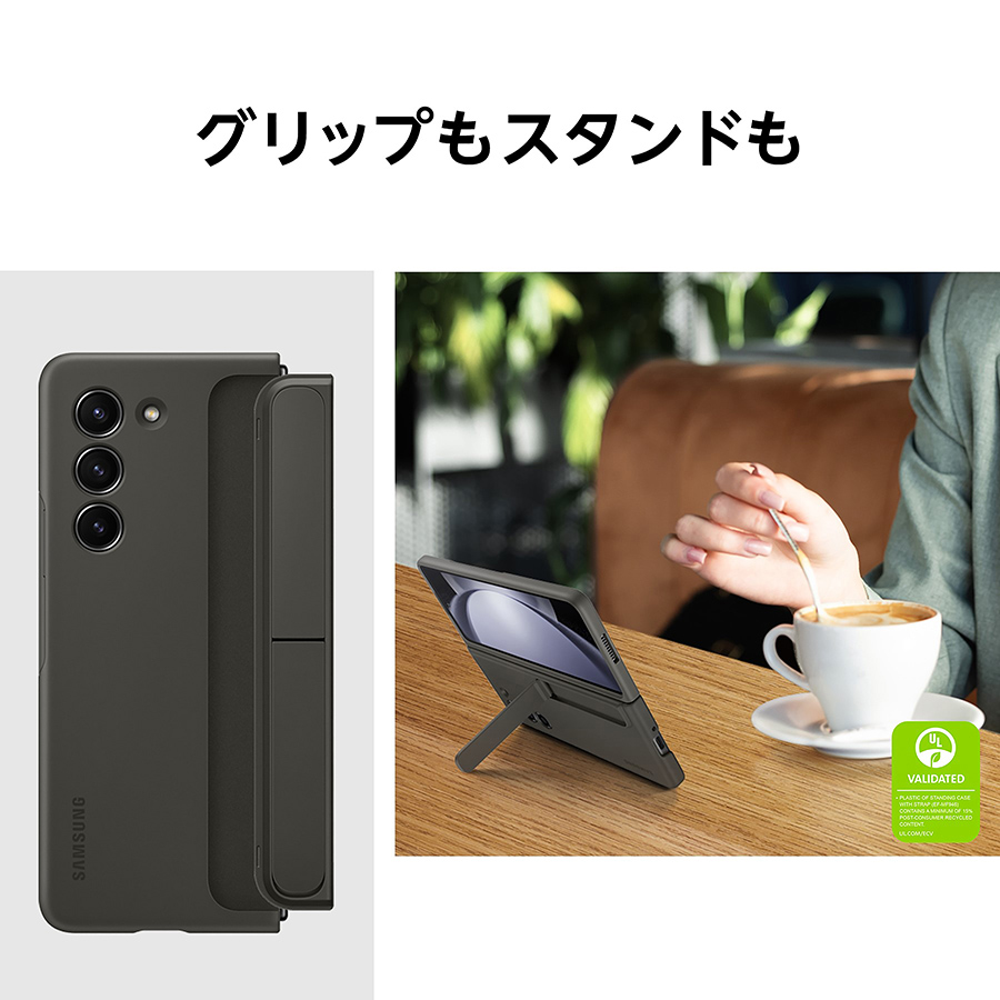 docomo select Galaxy Z Fold5 ケース SC-55D サンド グラファイト ストラップ スタンド機能付き ワイヤレス充電対応 カバー 純正
