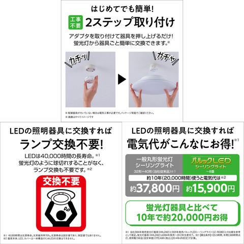 1.工事不要の簡単2ステップ取り付け2.コンパクトデザインできれいな発光面3.虫やホコリの侵入を防ぐ密閉カバー