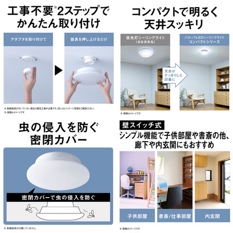 1.工事不要の簡単2ステップ取り付け2.コンパクトデザインできれいな発光面3.虫やホコリの侵入を防ぐ密閉カバー