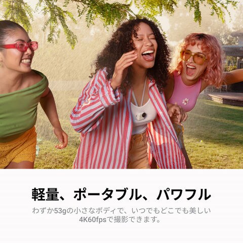 4K60fpsの映像は鮮明でなめらか、しかもカメラはわずか53gと超軽量で、持ち運びやマウントも快適です。