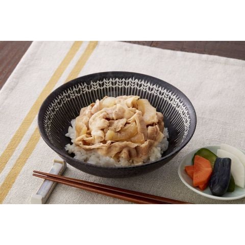 豚バラ肉と玉ねぎを特製醤油ダレで煮込みました。あったかいごはんにのせて豚丼に。豚キムチ丼にアレンジするのもよし、チャーハンの具や野菜炒めなどにもおすすめです。