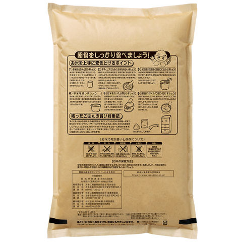 ・ご購入時の米袋には空気を抜く空気口を設けてありますので、正しい保管方法を行わないと、未開封の状態でも虫やカビの発生、食味の低下が起きる可能性があります。