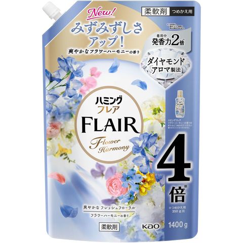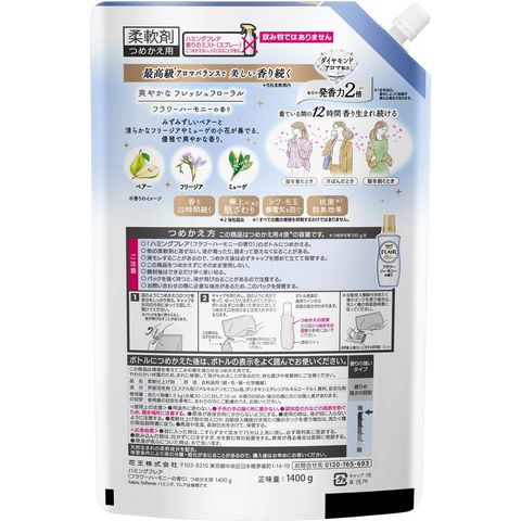 花王 ハミングフレア 柔軟剤 フラワーハーモニーの香り 詰め替え スパウトパウチ 1400g×6袋 4901301453396