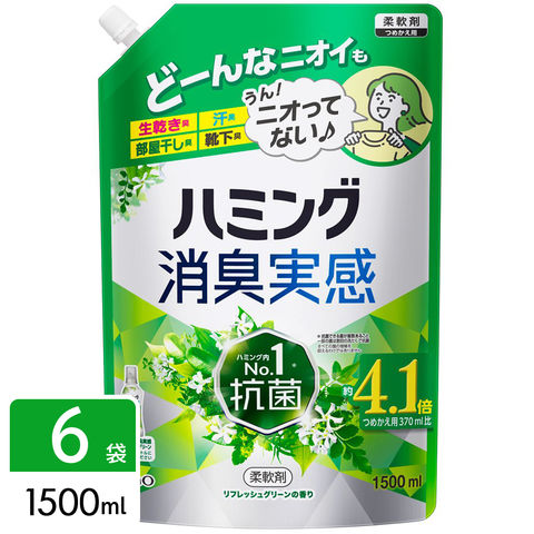花王 ハミング消臭実感 柔軟剤 リフレッシュグリーンの香り 詰め替え 1500ml×6袋 大容量 4901301450296