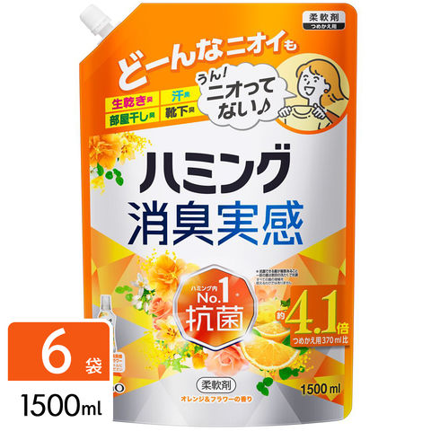 花王 ハミング消臭実感 柔軟剤 オレンジ&フラワーの香り 詰め替え 1500ml×6袋 大容量 4901301450326