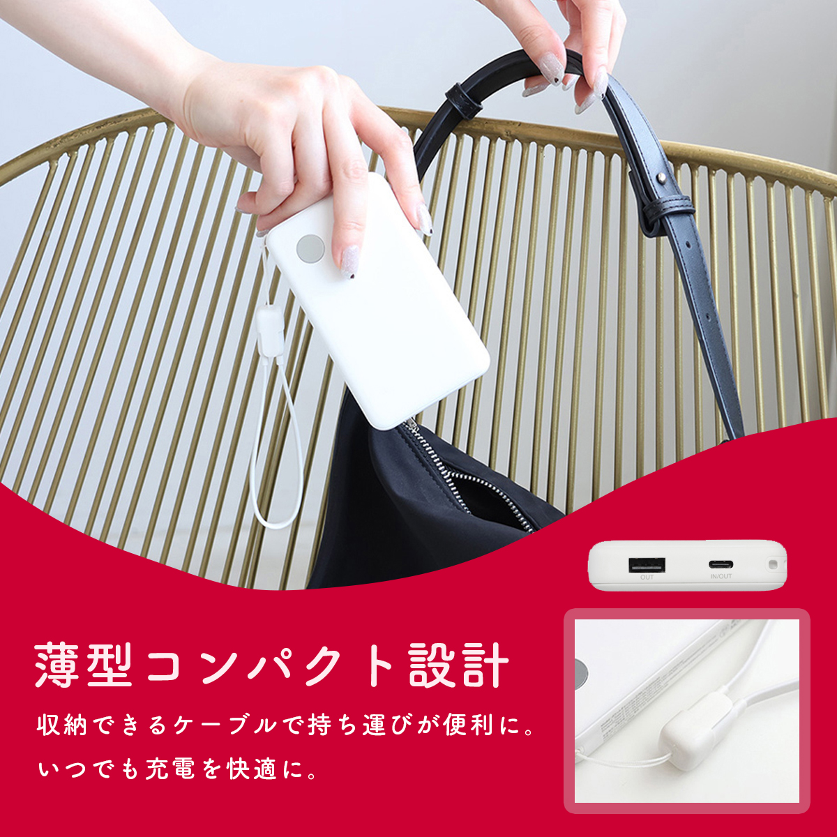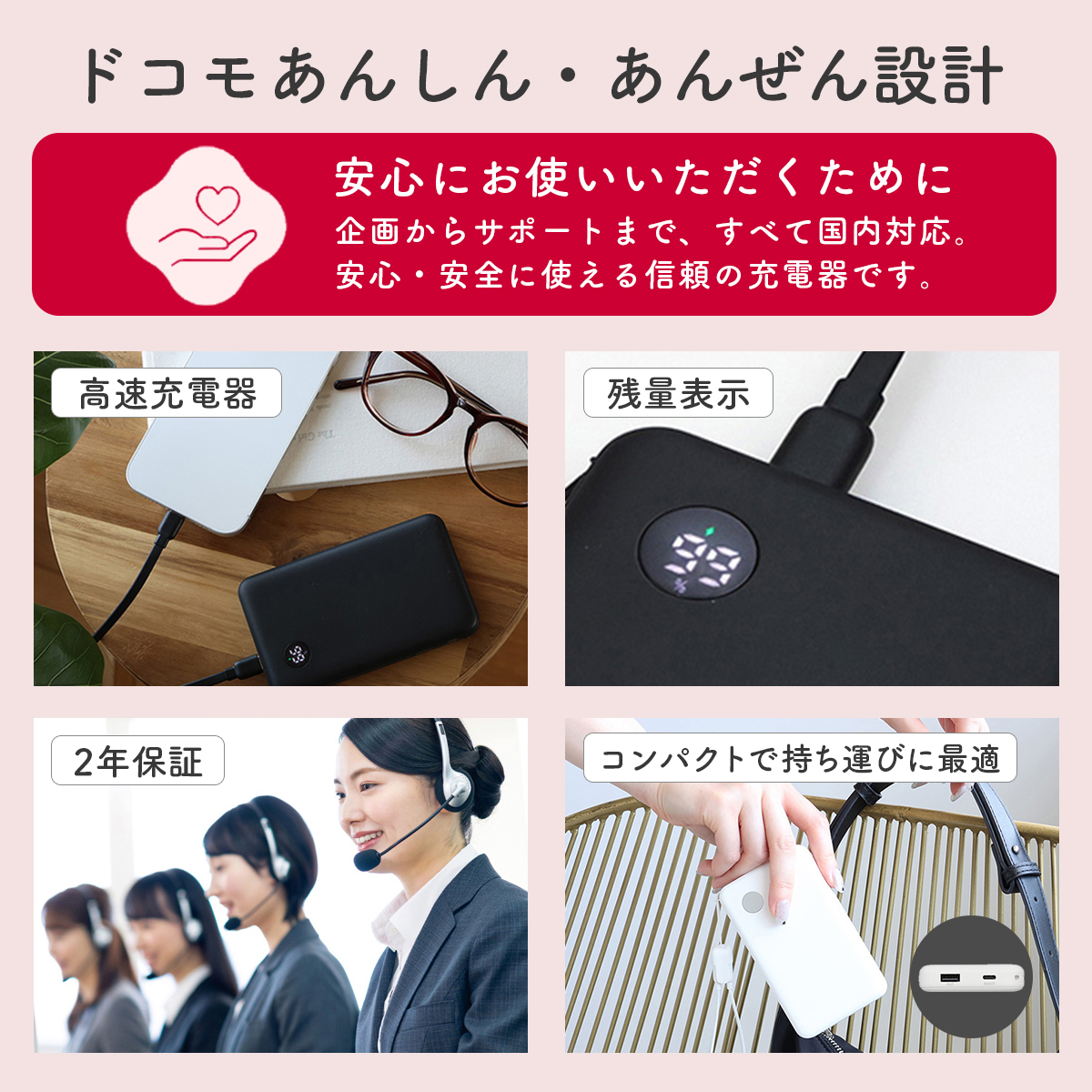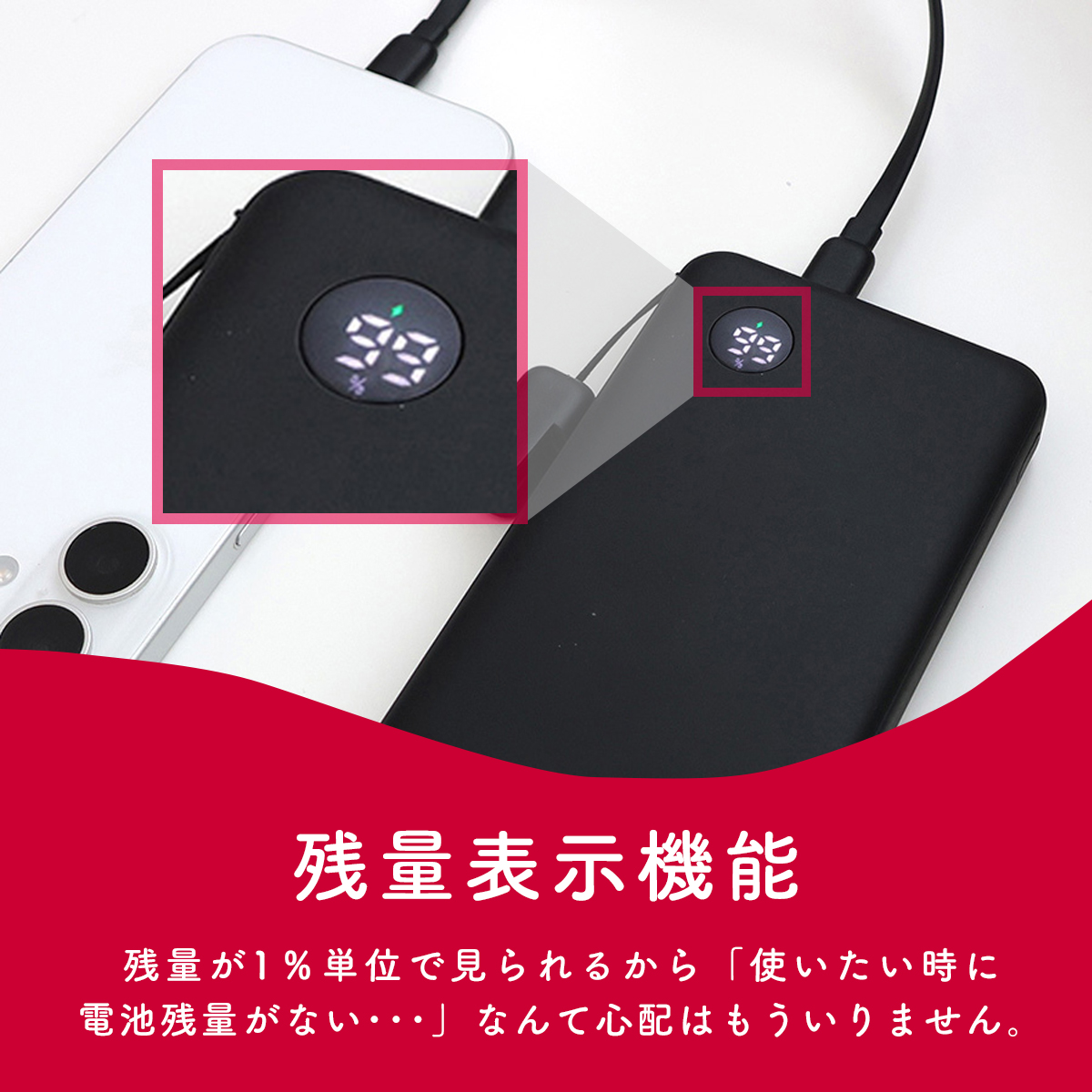 NTTドコモ◇ ドコモ純正 ポケットチャージャー07M 10000mAh モバイルバッテリー ホワイト USB Type-C to C 25cm 急速充電 iPhone 16 Android コンパクト 残量表示 AMT39025のレビュー