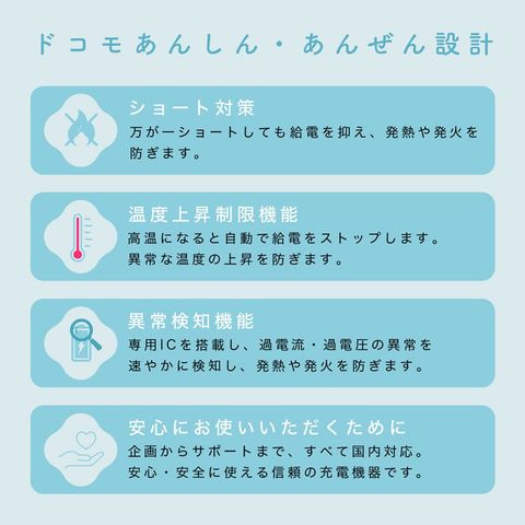 【ショート対策】万が一ショートしても給電を抑え、発熱や発火を防ぎます。