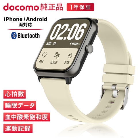 ドコモ純正 スマートウォッチ01 アイボリー スポーツ 健康管理 睡眠管理 3~5日間 長時間バッテリー Bluetooth5.2 防水 iPhone用 Android用