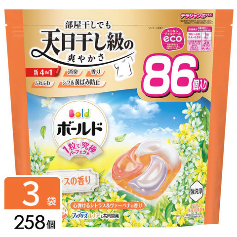 P&G ボールド 洗濯洗剤 ジェルボール 4in1 心弾けるシトラス&ヴァーベナの香り 詰め替え テラジャンボ 258個(86個×3袋) 4987176292667