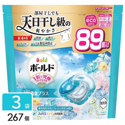 P&G ボールド 洗濯洗剤 ジェルボール 4in1 爽やかおひさまとフレッシュサボンの香り 詰め替え テラジャンボ 267個(89個×3袋) 4987176292766
