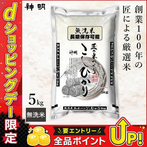 【最短出荷】 神明 無洗米 匠の米つくり コシヒカリ 5kg(1袋) 長期保存可能 破れにくい米袋で防虫対策 白米 精米 お米 コメ 家計応援米 送料無料