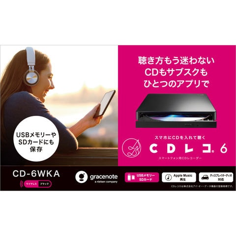 スマートフォン用CDレコーダー CDレコ6 ブラック 黒 最新モデル おすすめ ランキング プレゼント 新生活 一人暮らし 便利グッズ 時短家電 生活家電 ギフト 贈り物 国内メーカー 安心 安全 高品質 コスパ 買い替え まとめ買い 人気商品 定番
