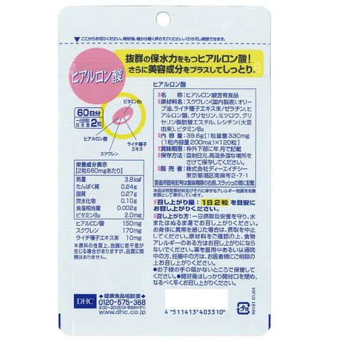 DHC 60日分 ヒアルロン酸 健康食品 サプリメント 1個 4511413403310