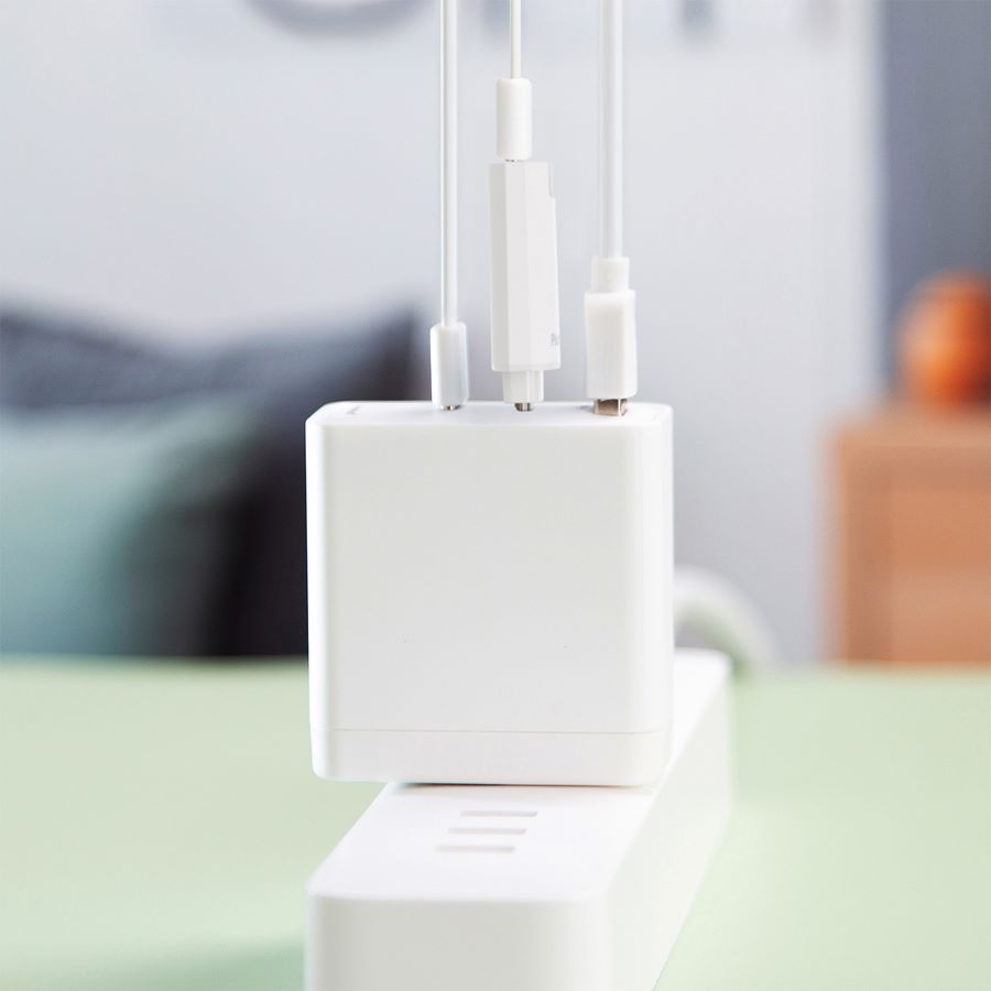 側面の厚みを約10.5mmと薄く設計。ポートが複数あるACアダプタに接続する場合でもほかの機器やケーブルに干渉しづらくなっています。