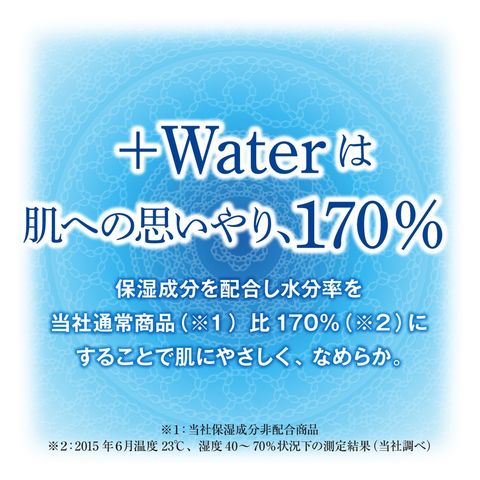 ・保湿成分を配合し、水分率を大王製紙通常品比170%にすることで、やさしくなめらかな触れごこちを実現。