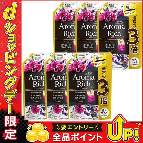 ライオン 【在庫処分】ソフラン アロマリッチ ジュリエット 柔軟剤 スイートフローラルアロマの香り 詰め替え用 特大 1200ml×6袋