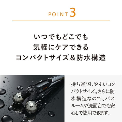 IS基準(IPX7相当)をクリアした防水仕様。バスタイムにも、安心してお使いいただけます。