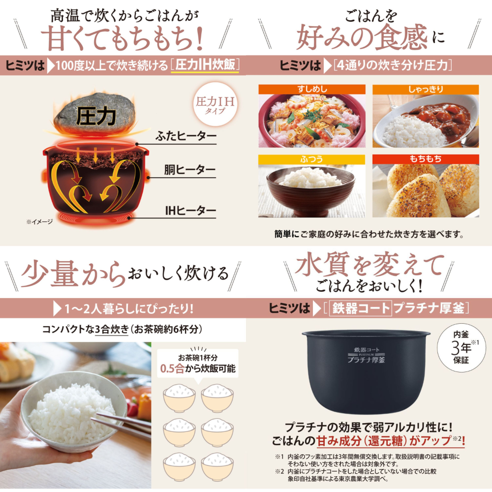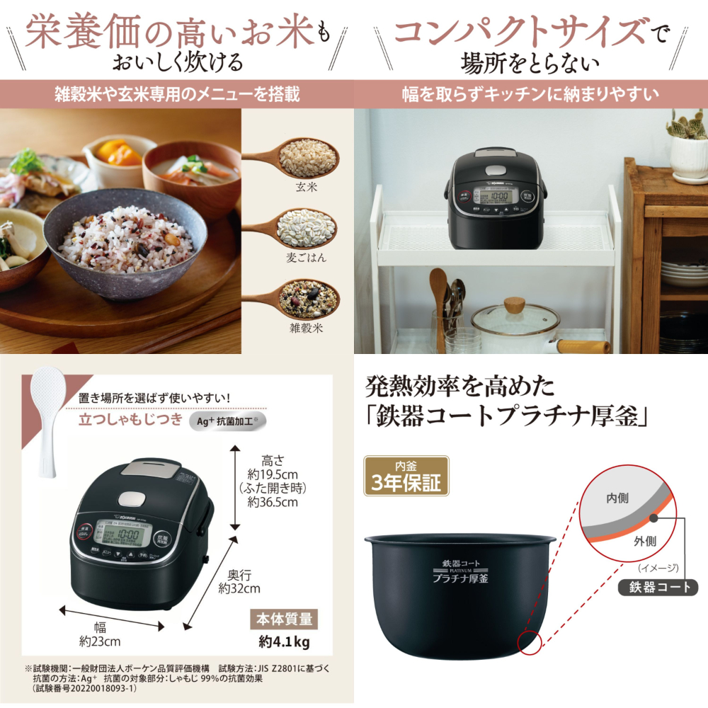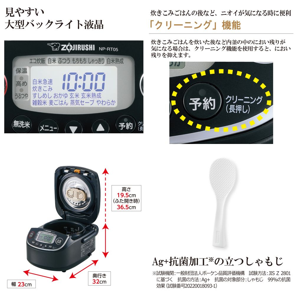 象印マホービン 圧力IH炊飯ジャー 極め炊き 3合炊き ブラック 炊き分け圧力 鉄器コートプラチナ厚釜 炊飯器 NP-RT05-BA