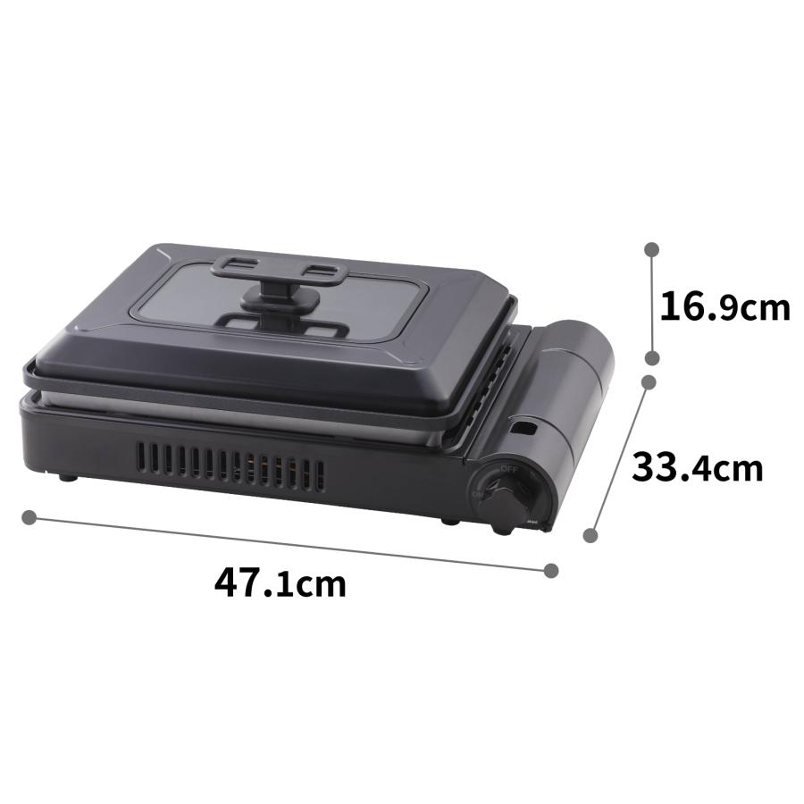 ・カセットボンベが燃料のガス式ホットプレート。電気を使わないコードレスだから使う場所を選びません。