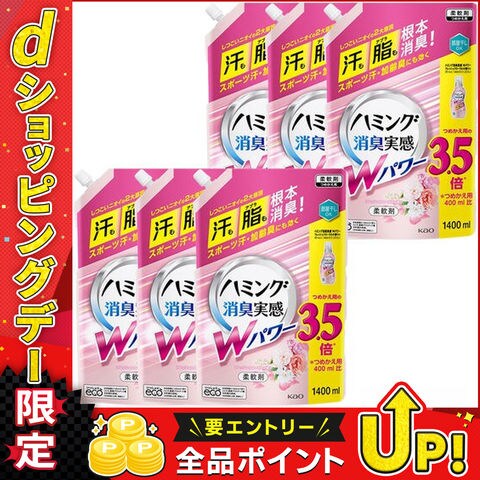 花王 ハミング 消臭実感 Wパワー 柔軟剤 フレッシュフローラルの香り 1400ml×6袋 4901301406361