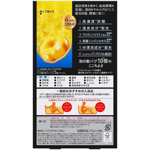 スポーツ後などの身体疲労に。浴後のほてり感にも。コンディショニング入浴に。温浴効果を高めて、血流循環を促進し、筋肉をやわらげほぐして、疲労回復・腰痛に効く!