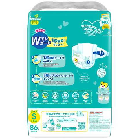 10年以上も病産院に選ばれてNo.1* 新改良パンパースさらさらケアテープは Wモレガード、モレ0へ!1秒吸収シート**!スポンジのように即吸収、お肌もさらさら!2倍のびのびフィットテープ**!動くたびに最大2倍**伸びるからぴったりフィット。背中のスキマも安心。最長12時間 一晩中の吸収力お肌にやさしい ふわふわ素材 ぴったり足まわりギャザー 独自! さらさら風通しライン オムツ