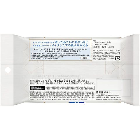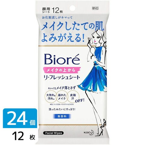 花王 ビオレ メイクの上からリ・フレッシュシート 無香料 12枚入×24個 4901301350480