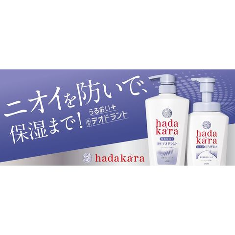 hadakara薬用デオドラント誕生。デオドラント成分がニオイを抑え、吸着保湿テクノロジーで肌を保湿します。大人から子供まで、家族みんなのニオイをケアできます。
