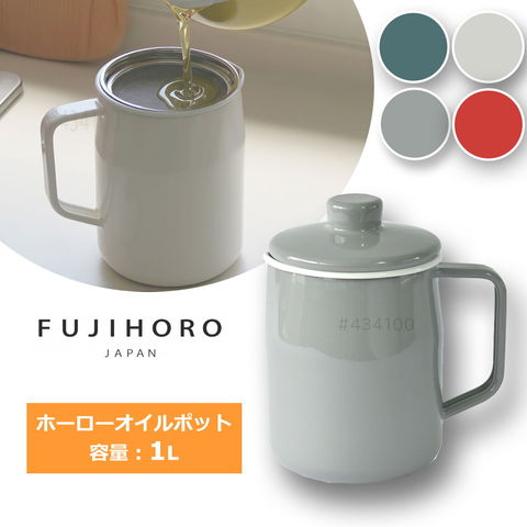富士ホーロー Filto 1.0L オイルポット ライトグレー ホーロー 琺瑯 2重のこし網で手軽に使える OP-1.0L.LG