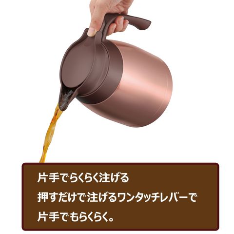 ・片手でらくらく注げる。押すだけで注げるワンタッチレバーで片手でもらくらく◎
