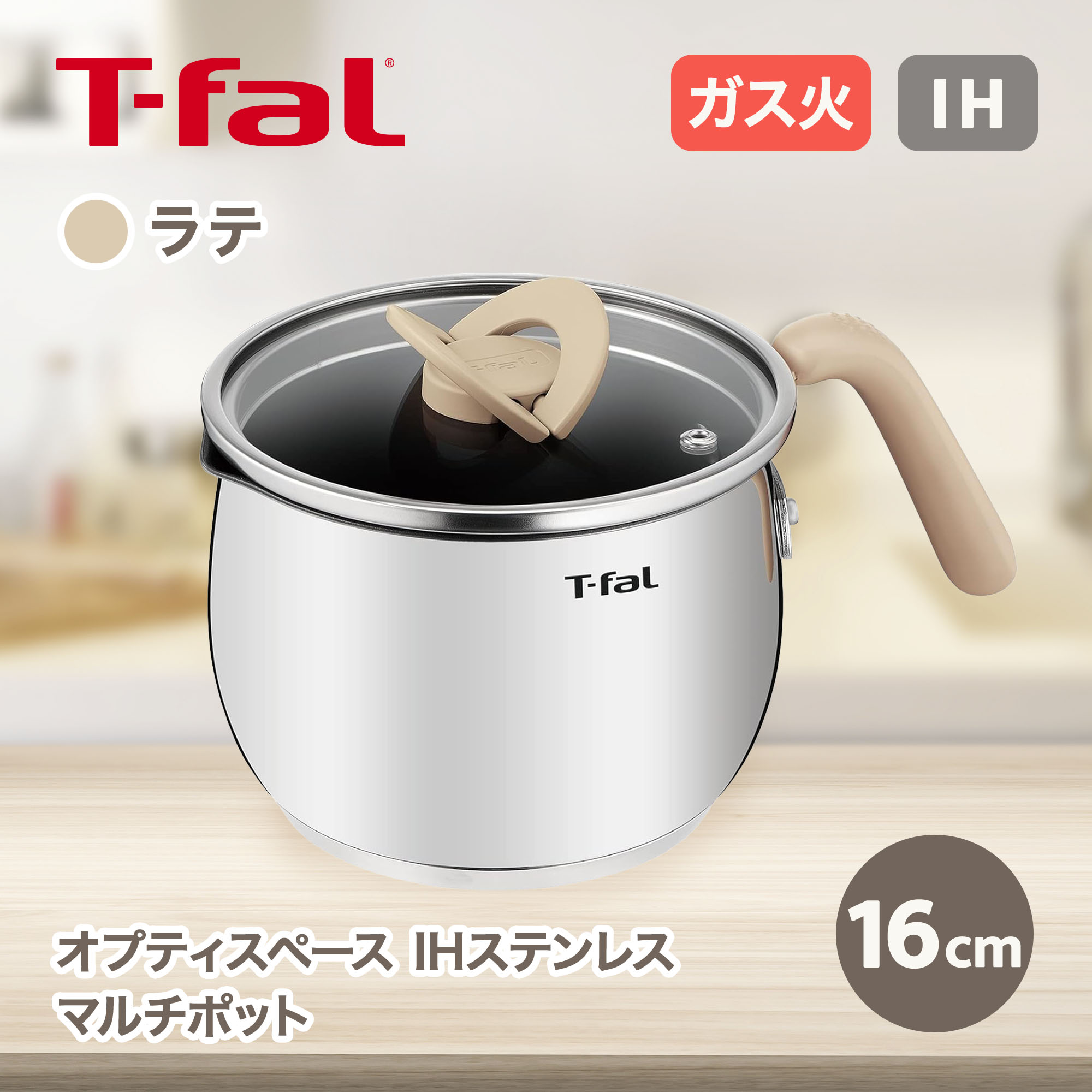 ティファール 【在庫限り】 マルチポット 片手鍋 16cm 2.6L IH・ガス火両対応 焼付塗装 オプティスペースIH こびりつきにくい ふた付き ステンレス ラテ G75183