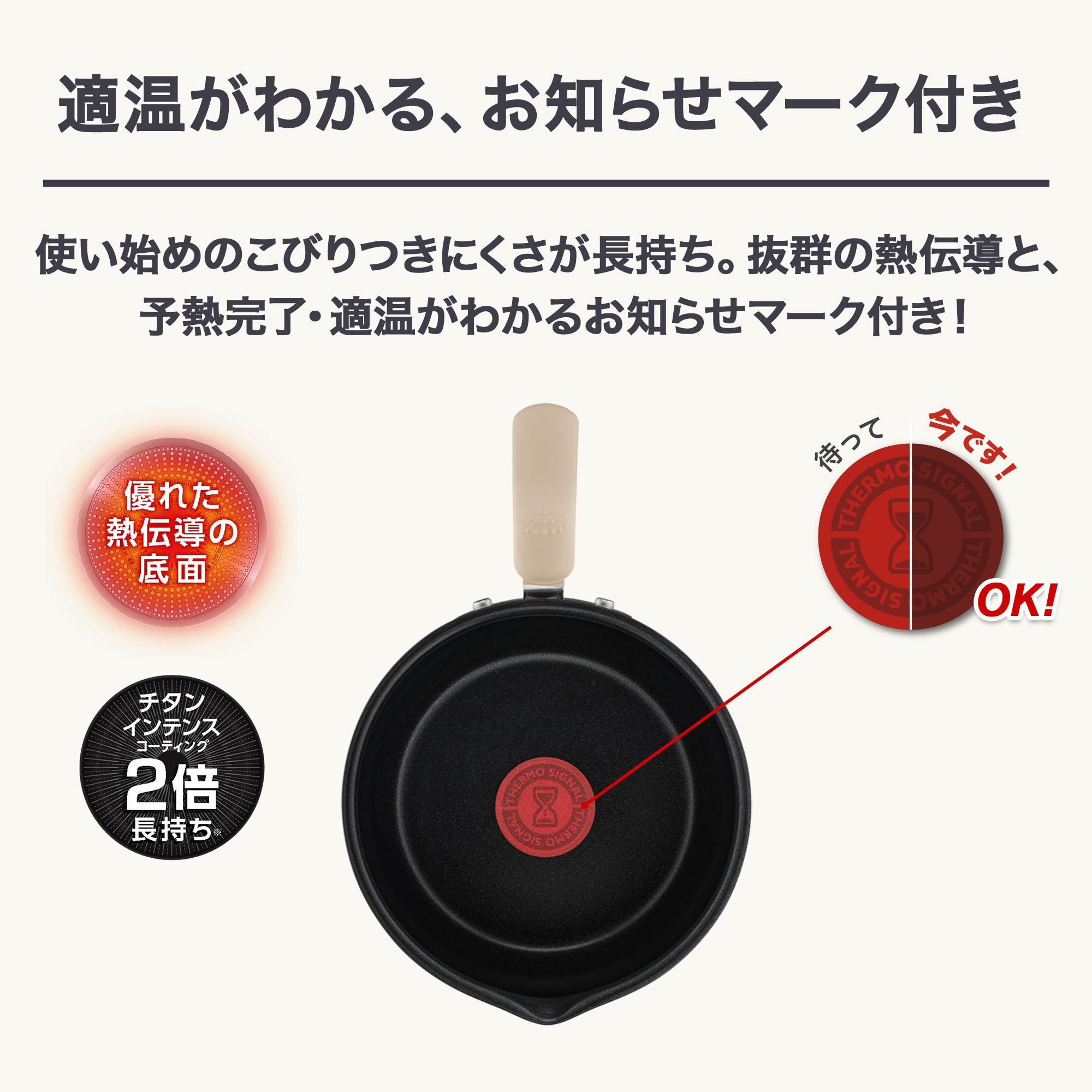 ・内側はチタン・インテンスコーティングで、使い始めのこびりつきにくさが長く続きます。