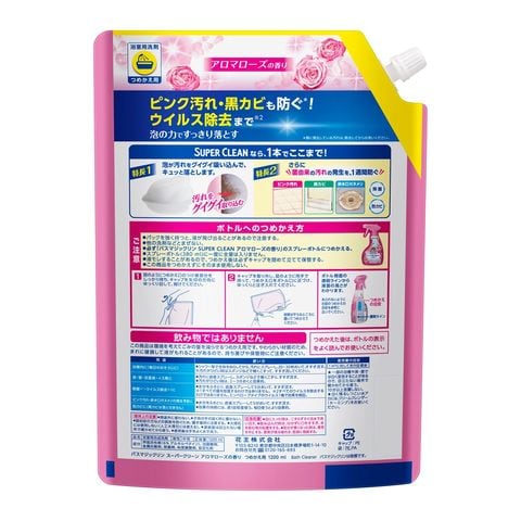 花王 バスマジックリン 風呂用洗剤 泡立ちスプレー SUPERCLEAN アロマローズの香り 詰め替え 大容量 1200ml×6袋 4901301415066