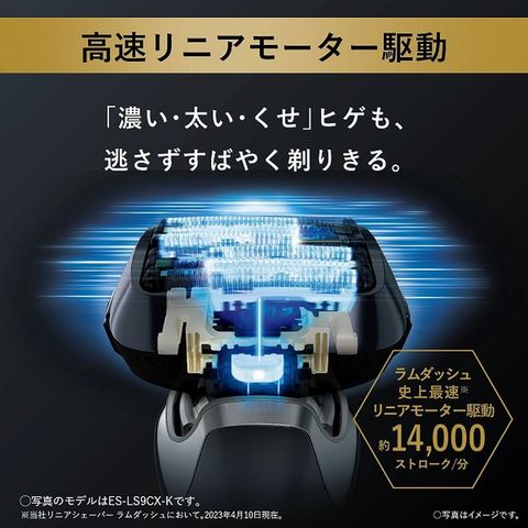 ・6枚刃×リニアモーター約14000ストローク/分=約84000カットアクション/分で多種多様なヒゲに対応