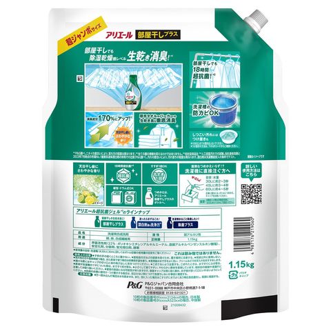 P&G アリエール ジェル 部屋干しプラス 洗濯洗剤 詰め替え 超ジャンボサイズ 1.15kg×6袋 4987176219060