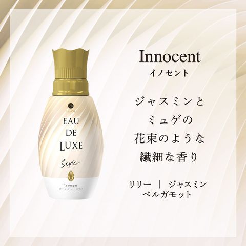 衣類の美容液配合リリー / ジャスミン / ベルガモット新配合の「衣類の美容液」成分が繊維の奥深くまで浸透。